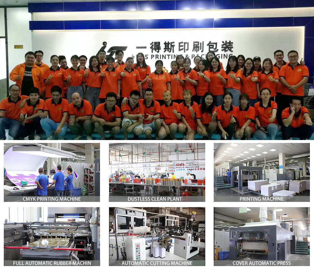 En termes d'équipement, nous avons beaucoup d'équipements avancés, y compris la machine de découpe automatique, la machine de pliage de papier universelle et la machine de reliure automatique. Ces dispositifs peuvent améliorer la productivité et assurer la précision et la cohérence des produits. En utilisant ces équipements, nous sommes en mesure de répondre aux besoins individuels de nos clients et de livrer des produits de haute qualité à temps.